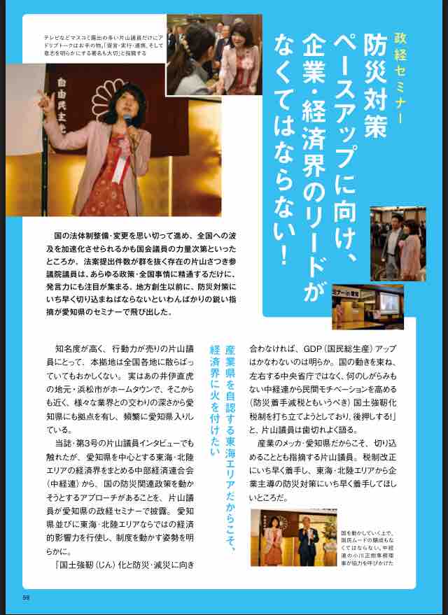 本日発売「地方創生観〜東海版〜」に片山さつき愛知県政経セミナーの記事が掲載されています!ご覧ください!